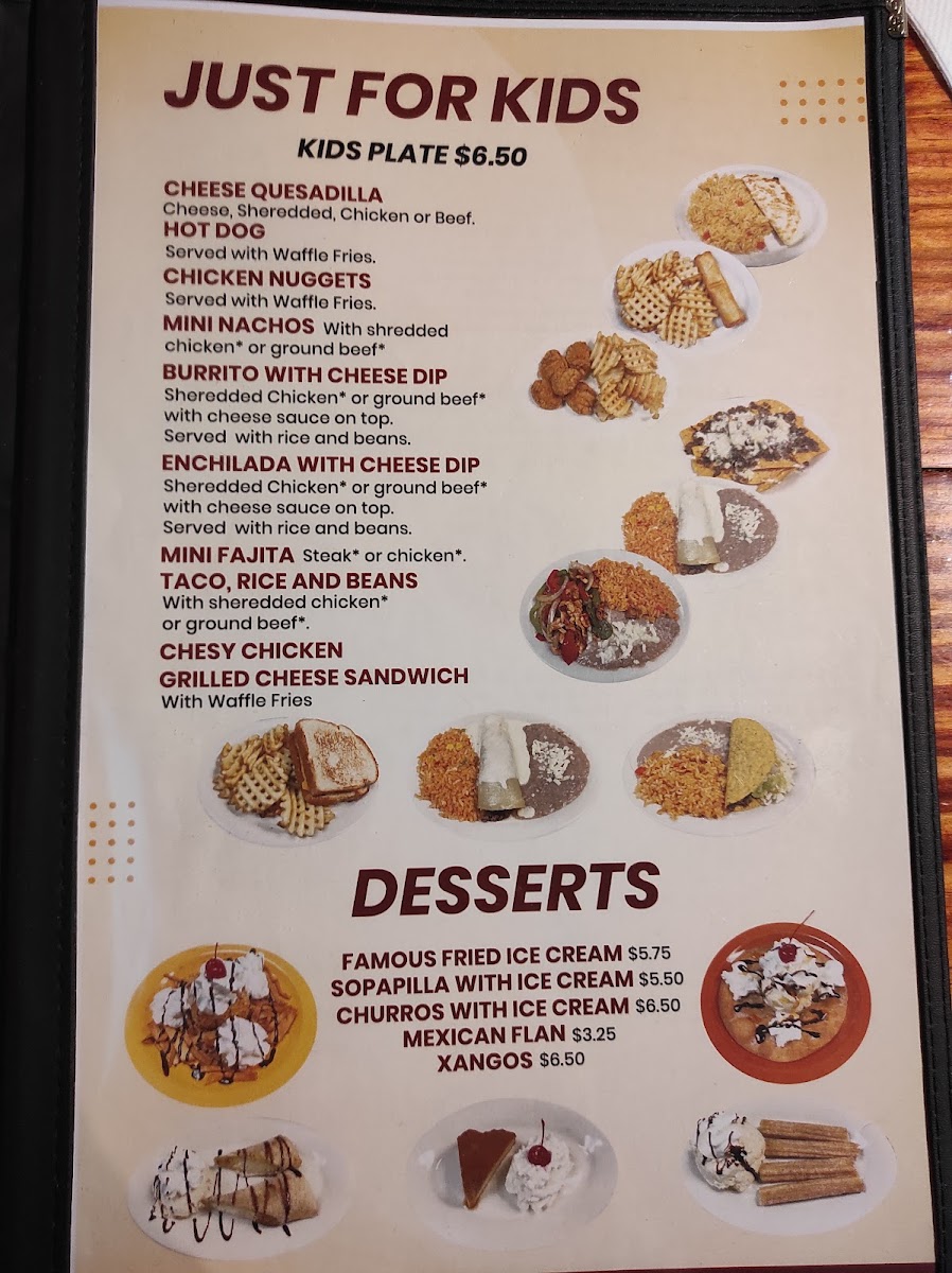 Families will appreciate the dedicated kids menu offering familiar, simple options in smaller portions, making it easy for younger diners to enjoy a taste of Mexican classics. Soft drink options, including traditional favorites and Mexican beverages, enhance the experience with variety and comfort.