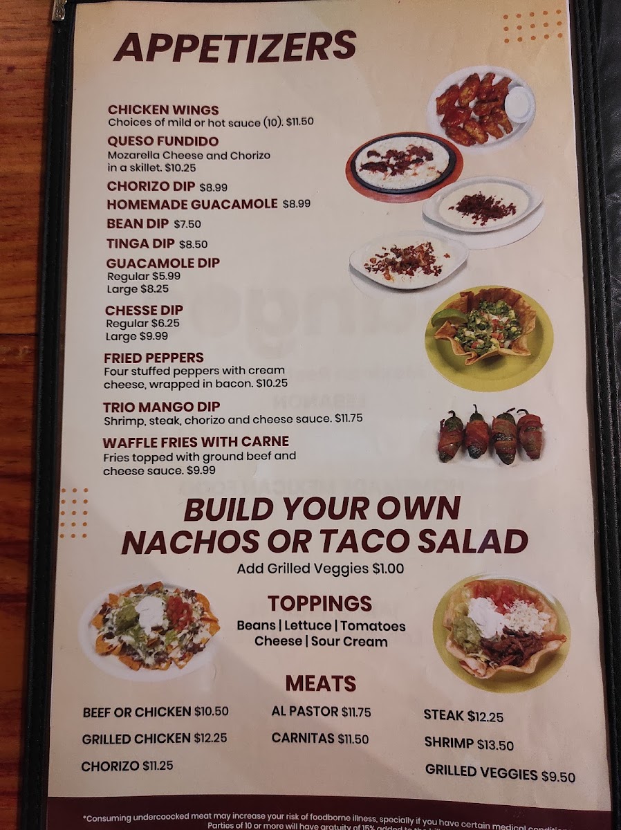 Mangos Mexican Restaurant Menu